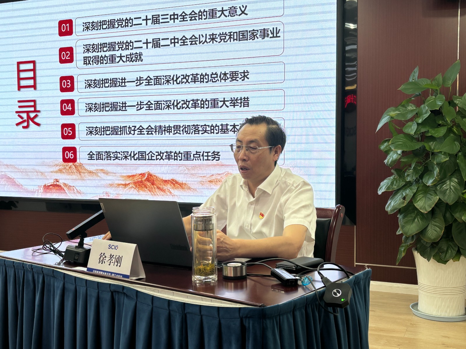 隨后進(jìn)行了政治理論學(xué)習(xí),徐孝剛在第一議題學(xué)習(xí)中領(lǐng)學(xué)了習(xí)近平總書記在黨的二十屆三中全會第二次全體會議、慶祝全國人民代表大會成立70周年大會、主持召開全面推動黃河流域生態(tài)保護(hù)和高質(zhì)量發(fā)展座談會上的重要講話精神及在甘肅考察時的重要指示精神。會議還傳達(dá)學(xué)習(xí)了王曉暉在成都市領(lǐng)導(dǎo)干部大會、全省科技大會上的講話精神,省國資委《以施工動火作業(yè)為重點的消防安全專項整治行動方案》《關(guān)于切實加強(qiáng)近期高溫天氣防范應(yīng)對工作的通知》等近期文件精神,法治專題傳達(dá)學(xué)習(xí)貫徹習(xí)近平總書記關(guān)于法治工作的重要論述,進(jìn)行了廉政警示教育學(xué)習(xí),黨員代表作了題為《重溫彝海結(jié)盟故事,感悟團(tuán)結(jié)奮進(jìn)力量》的分享式領(lǐng)學(xué)。
