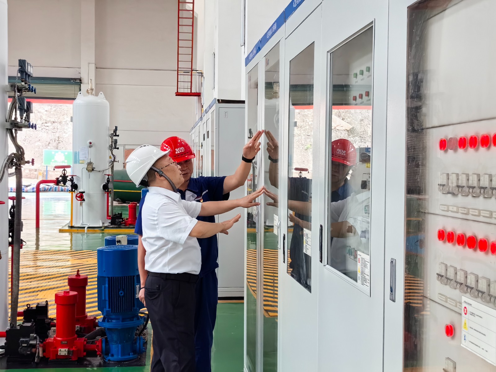 蔡承德一行深入廠房、大壩等一線生產(chǎn)區(qū)域,仔細(xì)查看電廠生產(chǎn)設(shè)備、防汛設(shè)施的運(yùn)行狀況,抽查電廠防汛值班的落實(shí)情況。在檢查過程中,蔡承德特別強(qiáng)調(diào)防汛減災(zāi)工作的重要性,要求電廠嚴(yán)格落實(shí)防洪搶險(xiǎn)措施,加強(qiáng)值班值守,確保迅速響應(yīng)、有效處置。同時(shí),還詢問電廠對(duì)有限空間作業(yè)、高風(fēng)險(xiǎn)區(qū)域作業(yè)等特殊作業(yè)的風(fēng)險(xiǎn)防控措施,要求電廠必須嚴(yán)格遵守相關(guān)安全規(guī)程,確保作業(yè)人員的安全。