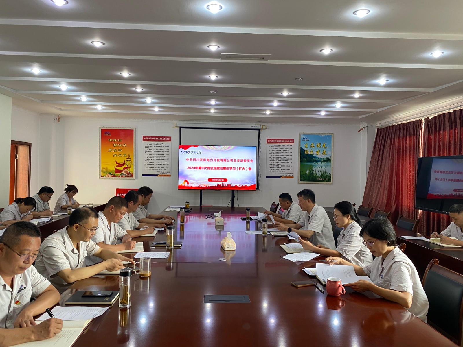 近日,天彭電力黨總支召開2024年第9次黨總支政治理論學(xué)習(xí)(擴(kuò)大)會(huì)議,集中學(xué)習(xí)省委十二屆六次全會(huì)精神,研究公司貫徹落實(shí)舉措。公司黨總支書記、執(zhí)行董事、總經(jīng)理劉紅兵主持,領(lǐng)導(dǎo)班子成員、黨員、干部、關(guān)鍵崗位人員參加學(xué)習(xí)。