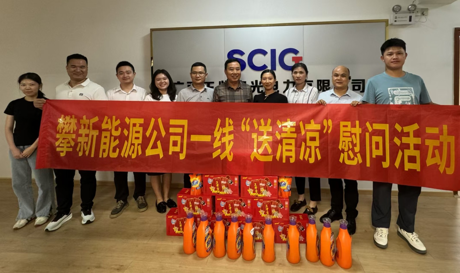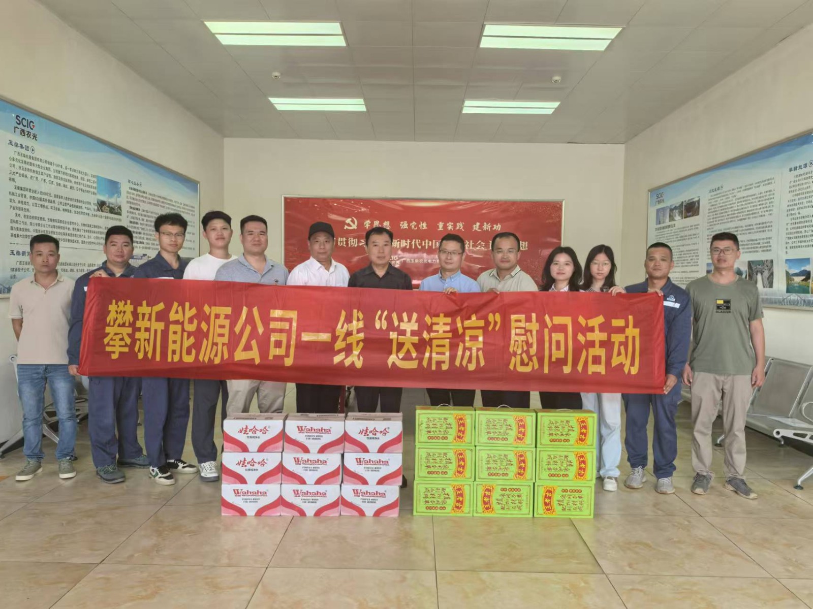 炎夏送清涼,溫情暖人心。攀新能源公司為進一步做好防暑降溫工作,深切關(guān)懷在項目現(xiàn)場作業(yè)的一線職工職業(yè)健康,確?,F(xiàn)場安全生產(chǎn),組織開展了“送清涼”一線慰問活動。攀新能源公司黨支部委員、總經(jīng)理周軍帶隊“送清涼”慰問小組,依次前往廣西農(nóng)光公司、桂平光伏電站、廣西融安公司光伏發(fā)電站項目現(xiàn)場,為辛勤工作的勞動者們送去清涼與關(guān)懷。