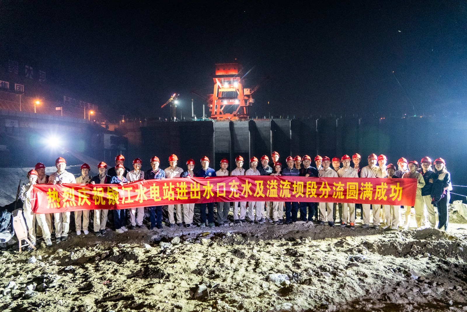 金秋十月,川投能源銀江水電站工程建設(shè)“進(jìn)度條”持續(xù)刷新。10月25日晚上,隨著川投能源副總經(jīng)理、導(dǎo)流明渠截流指揮長(zhǎng)徐孝剛一聲令下,十余臺(tái)挖掘機(jī)在二期上游圍堰右岸進(jìn)行破口開(kāi)挖,奔騰的金沙江水隨即涌入主河床廠房與溢流壩上游,充水平壓后江水經(jīng)溢流壩段流向下游,銀江水電站成功實(shí)現(xiàn)分流。這一重要進(jìn)展為按期完成導(dǎo)流明渠截流打下堅(jiān)實(shí)基礎(chǔ),也標(biāo)志著銀江水電站首臺(tái)機(jī)組投產(chǎn)發(fā)電正式進(jìn)入倒計(jì)時(shí)階段。