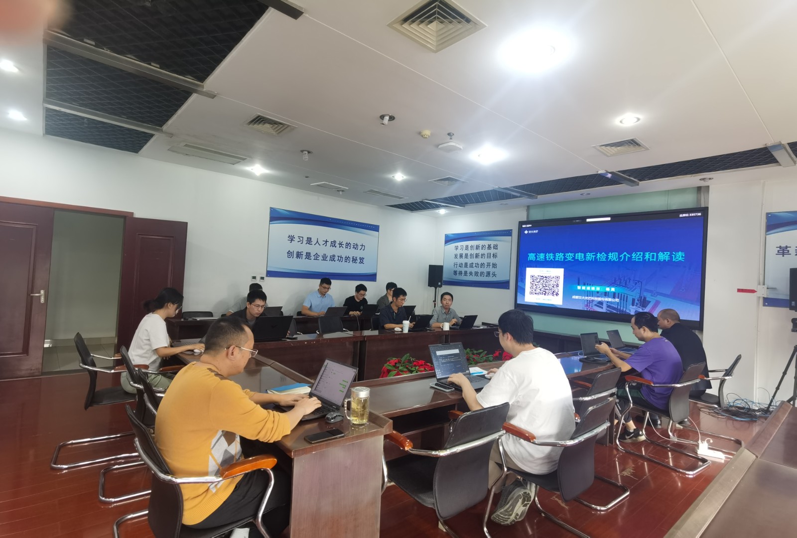楊昊詳細解讀了新檢規(guī)的出臺背景、具體內容和重大意義。他指出,新檢規(guī)落實國鐵集團黨組關于牽引變電所無人化的工作部署,適應信息化、智能化發(fā)展進程,將牽引變電所運行管理、運維修試、應急保障等規(guī)則予以完善,是交大光芒高鐵供電智能運維系列產品的根本遵循。他強調,研發(fā)中心要深入研究對標新檢規(guī),對現(xiàn)有運維產品進一步智能升級改造,研發(fā)更符合時代需求的、更加智慧的實時監(jiān)測和科學診斷系統(tǒng),以新質生產力賦能中國高鐵進一步提升供電可靠性。