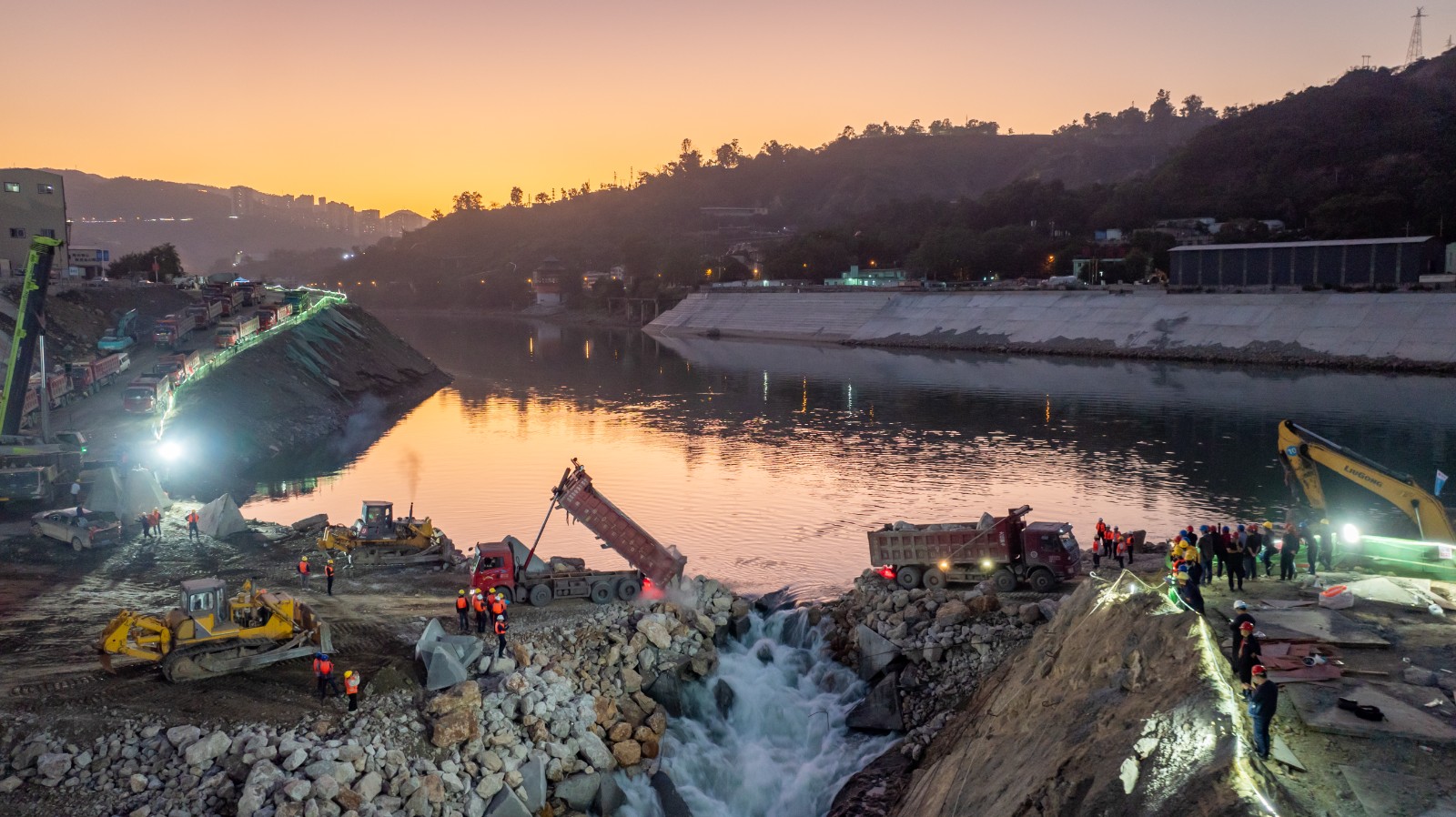11月18日19時(shí)08分,隨著最后一車石料拋投進(jìn)戧堤龍口,金沙江銀江水電站成功實(shí)現(xiàn)導(dǎo)流明渠截流,銀江大壩張開懷抱,迎接金沙江水歸位,攀枝花人民翹首以盼的“銀江湖”即將變?yōu)楝F(xiàn)實(shí)。