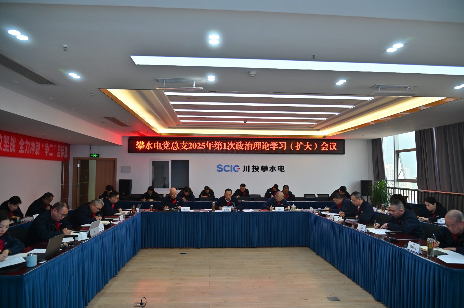 為深入學(xué)習(xí)貫徹習(xí)近平總書記重要講話精神和黨中央、省委、省政府及上級(jí)單位近期會(huì)議精神,樹牢安全環(huán)保意識(shí),加強(qiáng)法治和廉潔教育,近日,攀水電黨總支召開了2025年第1次政治理論學(xué)習(xí)(擴(kuò)大)會(huì)議。會(huì)議由川投能源副總經(jīng)理、攀水電公司黨總支書記、董事長(zhǎng)徐孝剛主持,攀水電公司黨員干部、統(tǒng)戰(zhàn)對(duì)象、入黨積極分子共30余人參加學(xué)習(xí)。