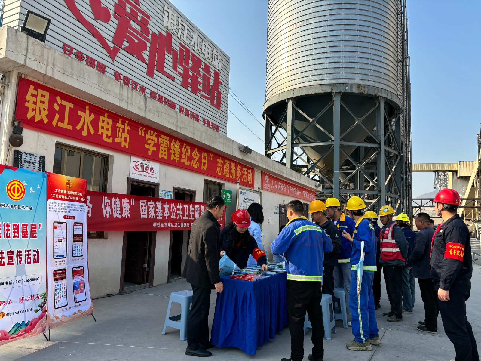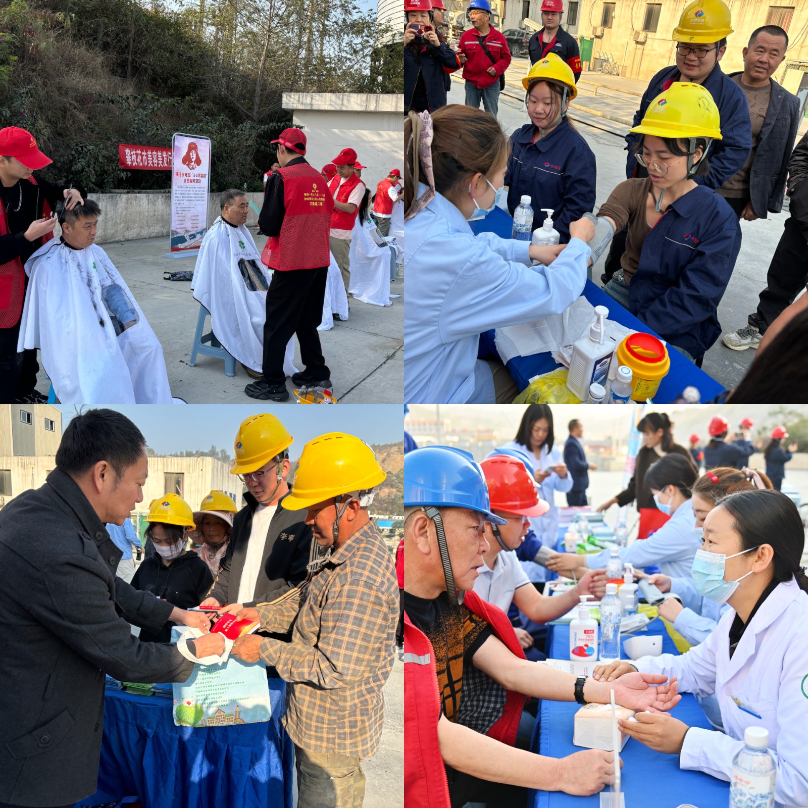 活動現(xiàn)場,銀江工地愛心驛站變身“時尚沙龍”?,攀枝花市美容美發(fā)行業(yè)協(xié)會10名專業(yè)理發(fā)師現(xiàn)場打造“10分鐘快剪”服務圈,公司工會同步提供消毒濕巾、免洗洗手液,確保大家剪完發(fā),清清爽爽上工去;銀江鎮(zhèn)衛(wèi)生院創(chuàng)新推出“移動健康管家”服務,由4名醫(yī)務人員分別進行血糖、血壓測量,為居住半年以上時間的居民建立健康檔案,簽約家庭醫(yī)生服務,為慢性病患者建檔,更有中醫(yī)把脈問診開展健康咨詢解答等;安全健康知識“沉浸教學”?,多名志愿者為一線建設者開展中暑、熱射病、春季流感預防等職業(yè)健康治知識宣傳,發(fā)放健康教育宣傳資料,為職工發(fā)放《安全生產(chǎn)法》《四川省安全生產(chǎn)條例》《安全生產(chǎn)與勞動保護職工學習手冊》《職業(yè)病防治宣傳手冊》《應急逃生知識宣傳冊》等資料1000余份,將雷鋒精神轉化為常態(tài)化服務,?贏得了一線職工的一致好評。?