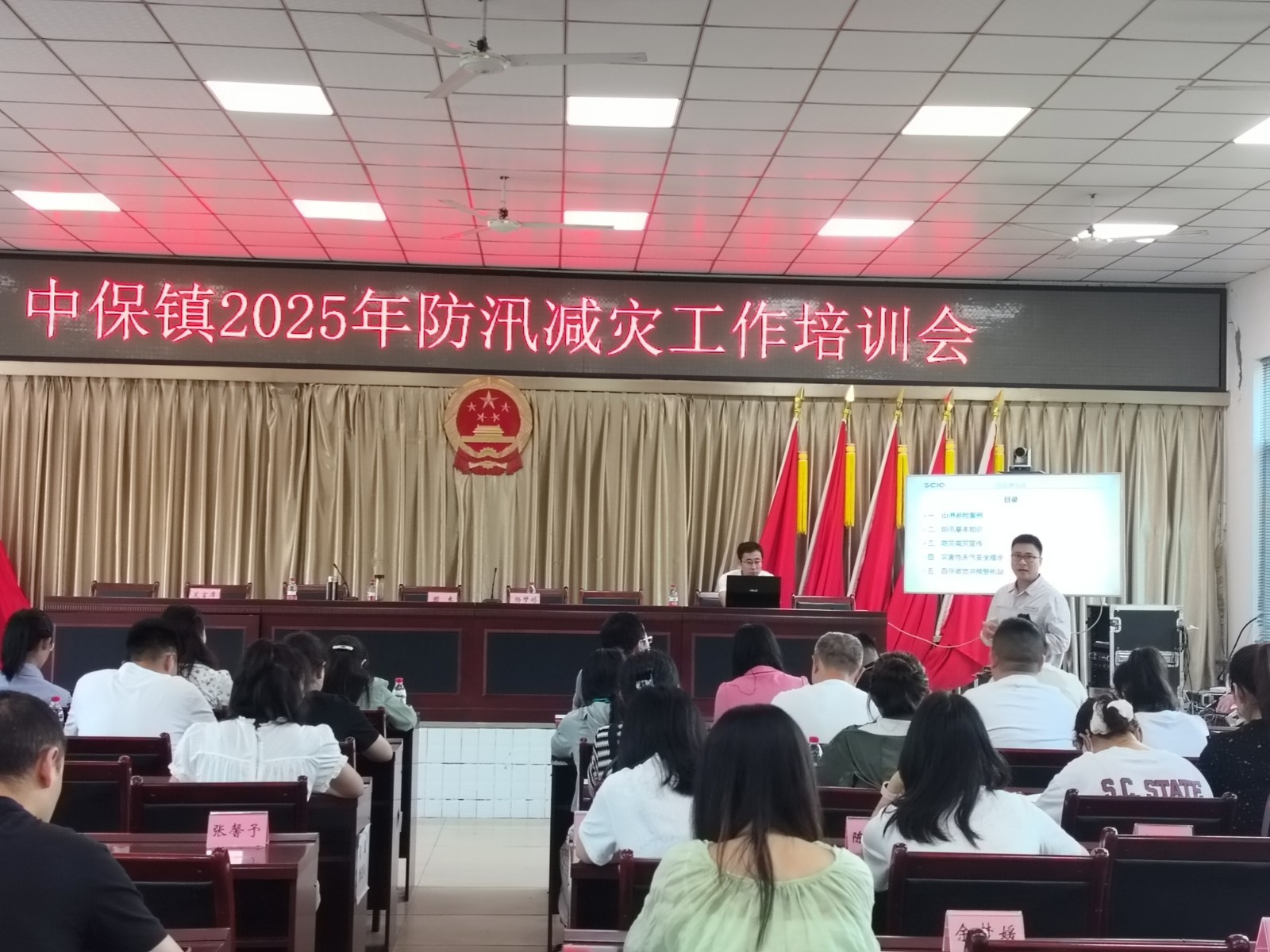 培訓活動在中保鎮(zhèn)政府會議室舉行,此次活動吸引了中保鎮(zhèn)政府工作人員、應(yīng)急救援隊員、村社區(qū)干部及群眾代表等共計130余人參與。來自百花灘電廠黨支部的黨員吉超擔任此次培訓的主講人。吉超同志憑借豐富的專業(yè)知識和實踐經(jīng)驗,圍繞山洪避險案例、防汛基本知識、防災(zāi)減災(zāi)宣傳、災(zāi)害性天氣安全提示、百花灘電廠泄洪預(yù)警機制等五個方面,進行了深入淺出的講解。通過此次培訓,中保鎮(zhèn)各級部門和社會各界人士的防災(zāi)減災(zāi)意識得到了顯著增強,對防汛等災(zāi)害防范工作有了更深入的認識和理解。同時,進一步強化了百花灘電廠與中保鎮(zhèn)政府的企地合作關(guān)系,為今后共同應(yīng)對各類災(zāi)害風險、保障人民群眾生命財產(chǎn)安全奠定了堅實基礎(chǔ)。