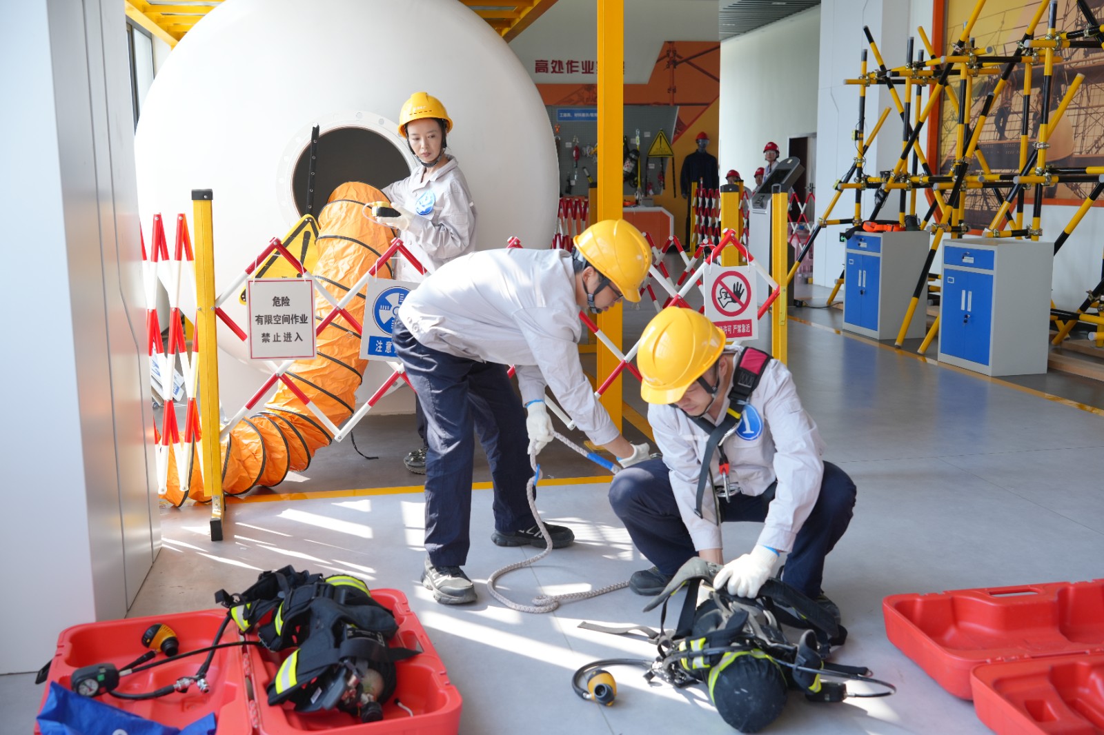 開幕式后,比賽緊扣“人人講安全、個(gè)個(gè)會(huì)應(yīng)急”,設(shè)置了“火災(zāi)逃生”和“有限空間救援”兩個(gè)極具挑戰(zhàn)性的項(xiàng)目。在火災(zāi)逃生項(xiàng)目中,模擬火災(zāi)現(xiàn)場(chǎng)煙霧彌漫,警報(bào)聲尖銳刺耳,參賽隊(duì)員們迅速反應(yīng),有條不紊地撤離模擬火災(zāi)現(xiàn)場(chǎng)。有限空間救援項(xiàng)目更是考驗(yàn)重重,隊(duì)員們熟練操作,分工明確、密切配合,充分展現(xiàn)了電力職工的專業(yè)素養(yǎng)、應(yīng)急處置能力和團(tuán)隊(duì)協(xié)作能力。