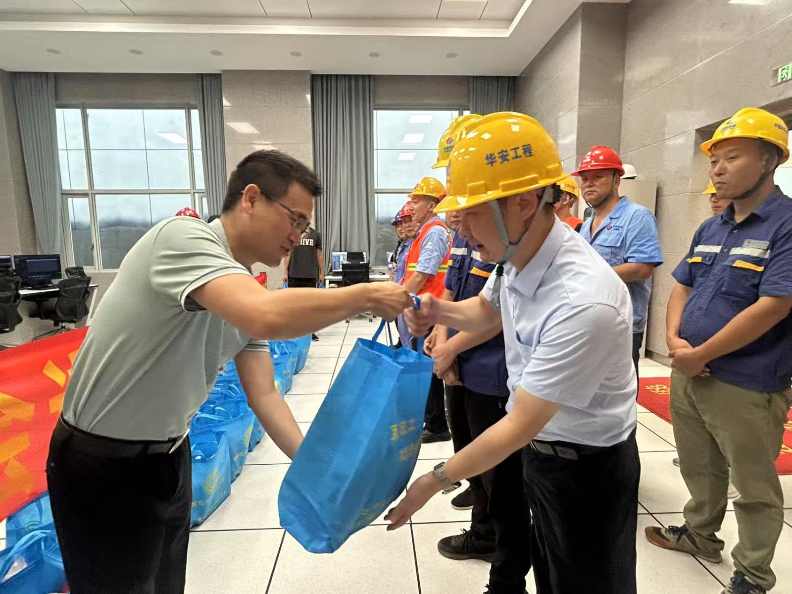 張平一行在現(xiàn)場(chǎng)了解了銀江水電站工程建設(shè)和安全生產(chǎn)情況,向一線人員送上了洗發(fā)露、沐浴露、洗衣液等清涼物資300余份。“工會(huì)送來(lái)的不僅是清涼,更是暖心!”大家紛紛表示,雖然天氣炎熱,但感受到了“娘家人”的貼心關(guān)懷,一定會(huì)克服高溫困難,時(shí)刻牢記“安全第一、生命至上”理念,以更加飽滿的熱情投入工作中。