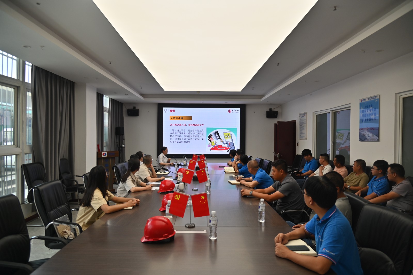為確保宣傳實效,在宣傳活動月期間,公司積極探索運(yùn)用多元化宣傳載體進(jìn)行了系列宣傳:一是精心篩選了圖文并茂、通俗易懂的宣傳資料,在人員較多的公司微信工作群、建設(shè)安全工作群、水情共享信息群上共發(fā)布了五期的相關(guān)宣傳。確保防范非法金融知識直達(dá)每一位公司員工及一線工友。二是充分發(fā)揮公共視頻播放系統(tǒng)的作用,利用公司樓宇電視循環(huán)播放宣傳片近200次。時刻提醒員工擦亮雙眼,遠(yuǎn)離陷阱,營造了濃厚的宣傳氛圍。三是聯(lián)合中國銀行金曦苑支行,針對防非信息獲取渠道相對有限、相關(guān)金融知識可能更為薄弱的一線農(nóng)民工工友,為其帶來了一場“接地氣、聽得懂、用得上”的防范非法金融知識宣講,并現(xiàn)場發(fā)放宣傳手冊、解答疑問。有效打通了金融風(fēng)險防范宣傳的“最后一公里”,將安全知識送到了最需要的人群身邊,受到了現(xiàn)場人員的熱烈歡迎和高度評價。