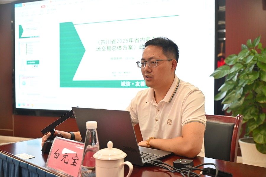 此次培訓(xùn)邀請到四川能投綜合能源有限責(zé)任公司電力交易分公司副總經(jīng)理白元寶,圍繞四川省電力銷售政策、交易實施方案等方面內(nèi)容進(jìn)行詳細(xì)講授。白元寶首先對《四川省2025年省內(nèi)電力市場交易總體方案》進(jìn)行政策解讀;再從“水火風(fēng)光同臺競爭、分時簽約銜現(xiàn)貨、零售市場防風(fēng)險”核心變化點、對市場成員要求、電力批發(fā)交易、電力零售交易、價格及結(jié)算機制、市場銜接事項等方面進(jìn)行講授;最后針對發(fā)電企業(yè)的電力交易方案,從中長期及現(xiàn)貨交易,圍繞規(guī)則要求、市場形勢、邊界條件、交易組織模式等方面進(jìn)行詳細(xì)講解,并對現(xiàn)貨市場下的中長期交易、增強抗市場風(fēng)險能力、構(gòu)建交易組織體系、現(xiàn)貨市場的影響等重點、難點的核心事項進(jìn)行了分析和講授。