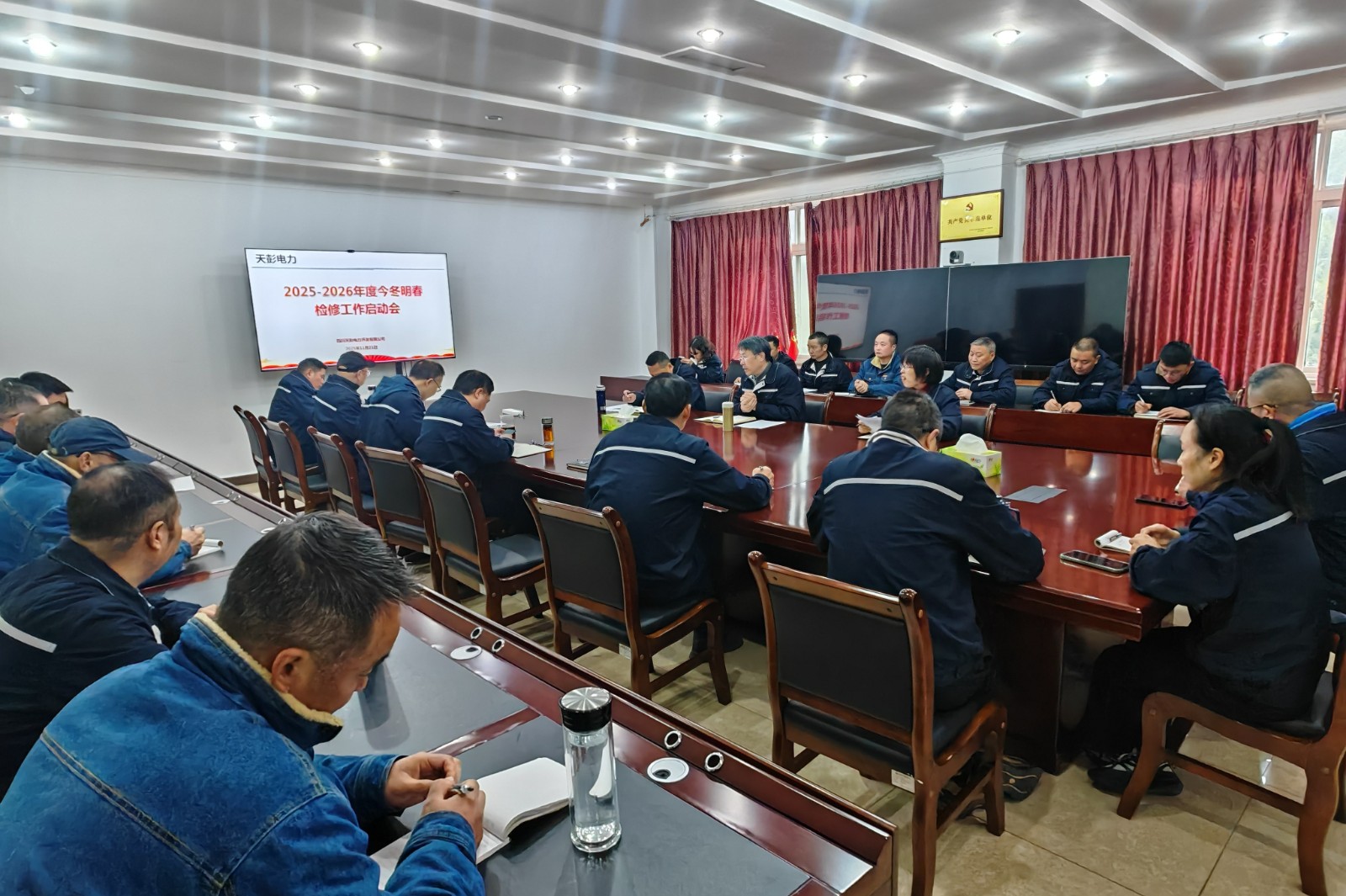 會議傳達學習了川投電力2025-2026年度今冬明春檢修工作啟動會精神,觀看了《2025年生產(chǎn)安全事故》警示教育片,回顧總結(jié)了2024-2025年度檢修維護工作成效,結(jié)合2025年生產(chǎn)運行中發(fā)現(xiàn)的機組設(shè)備問題和缺陷,研究制定了2025-2026年度今冬明春檢修技改工程計劃,并明確將鳳鳴橋站1#機組A級檢修作為本次檢修重點項目。會議強調(diào),必須堅持“應(yīng)修必修,修必修好”原則,嚴格執(zhí)行工藝質(zhì)量標準,認真落實關(guān)鍵點驗收與三級驗收簽字制度,嚴把檢修質(zhì)量關(guān),徹底消缺機組除患,切實提升設(shè)備運行可靠性與效率。