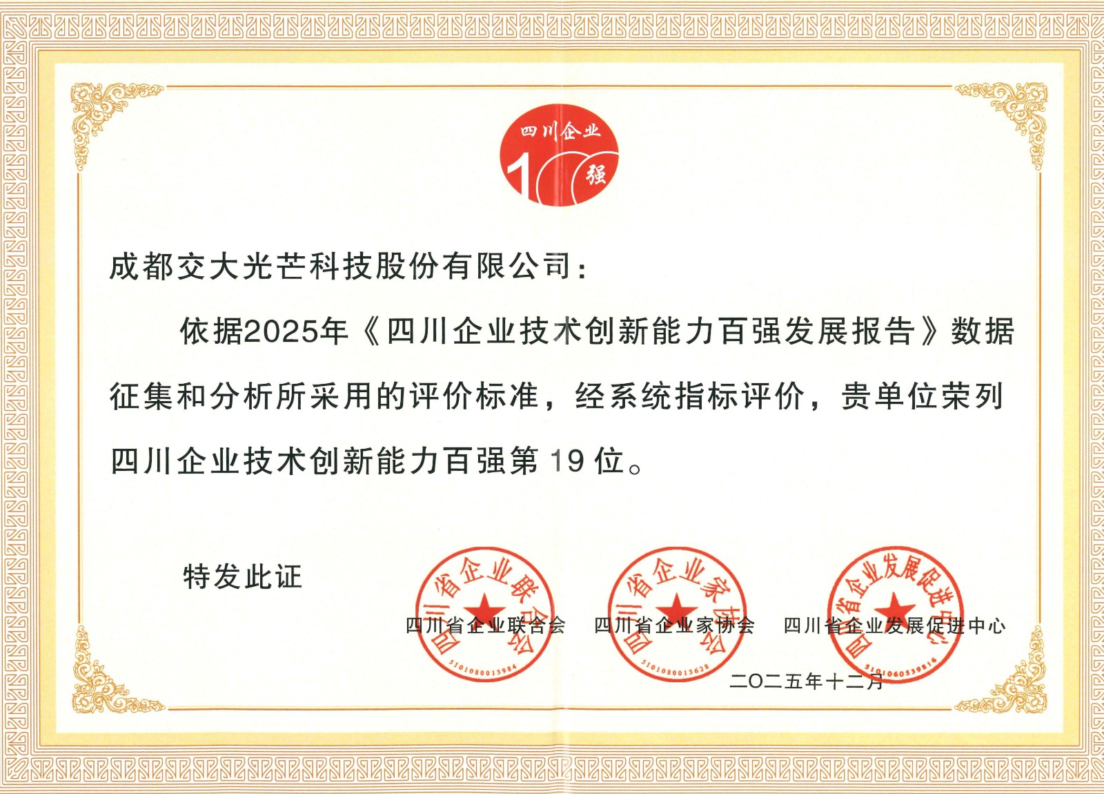 近日,2025年四川企業(yè)技術(shù)創(chuàng)新發(fā)展大會在成都召開,川投能源所屬交大光芒公司獲評四川企業(yè)技術(shù)創(chuàng)新能力百強(qiáng)企業(yè)(第19位)和四川企業(yè)發(fā)明專利擁有量百強(qiáng)企業(yè)(第25位),這是交大光芒連續(xù)四年榮獲“雙百強(qiáng)”企業(yè),公司首席專家、副總經(jīng)理陳奇志獲評“2025年四川企業(yè)技術(shù)創(chuàng)新突出貢獻(xiàn)人物”。