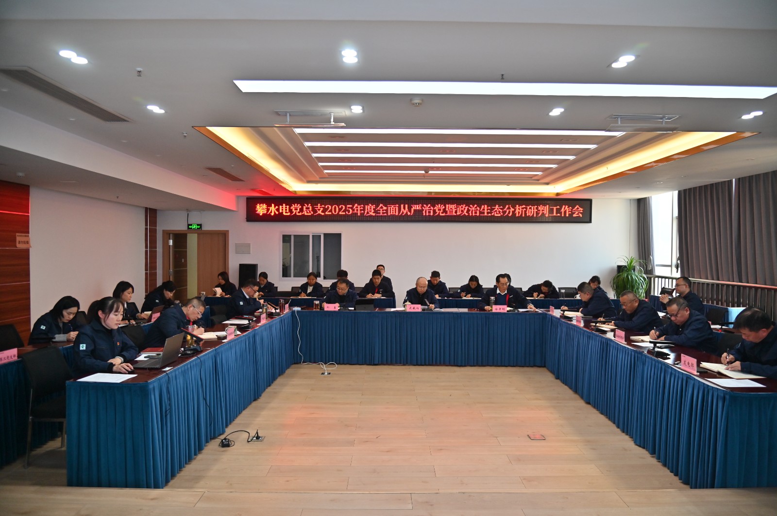 1月13日,攀水電黨總支組織召開2025年度全面從嚴治黨暨政治生態(tài)分析研判工作會,會議由公司黨總支委員、紀檢小組長楊銳主持,黨總支副書記(主持黨總支工作)、總經(jīng)理吳巍嶼出席會議并講話;公司領(lǐng)導(dǎo)班子成員參加會議,全體中層干部、黨員列席會議。