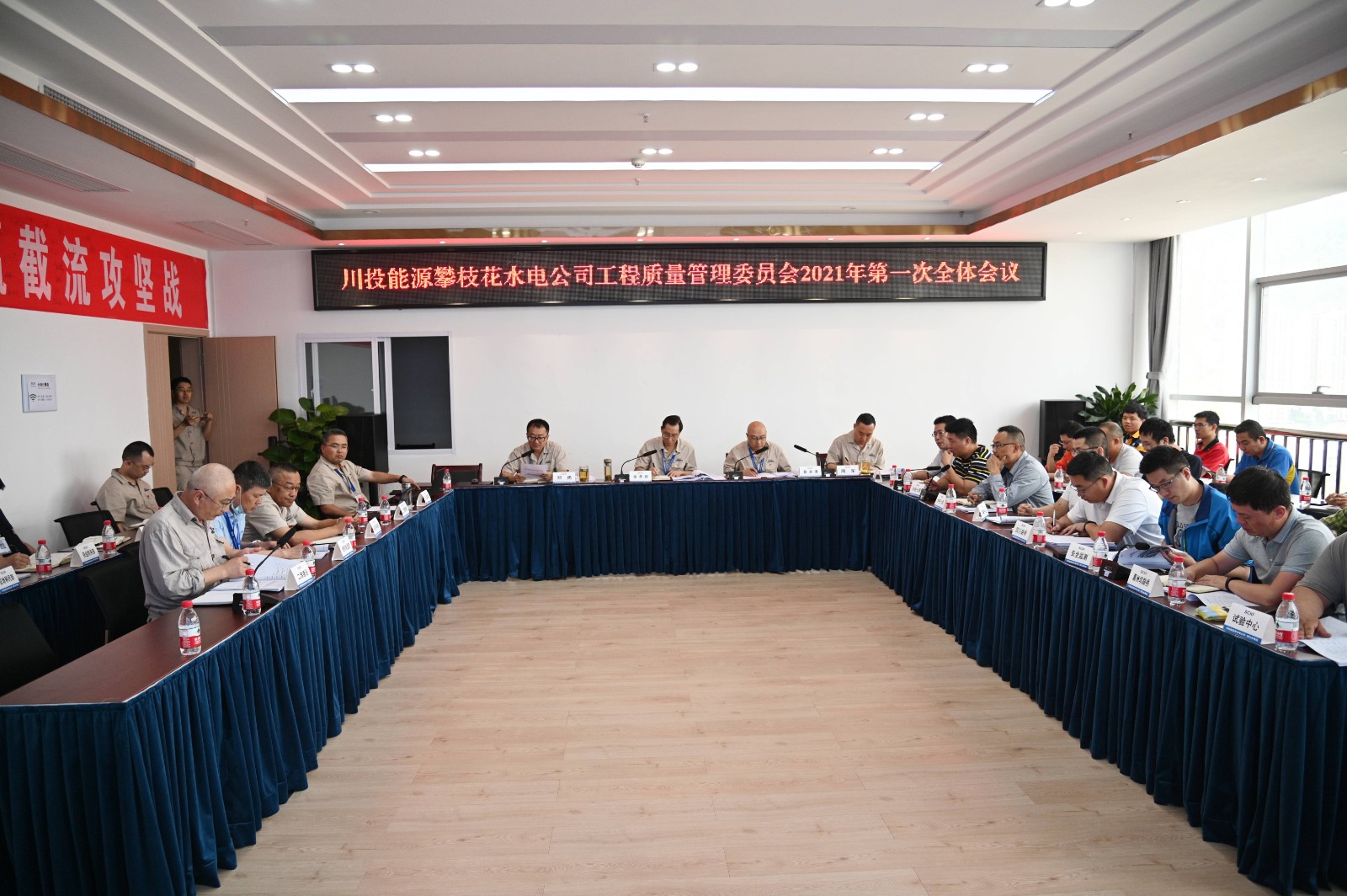 4月16日,川投能源攀水電公司召開工程質(zhì)量管理委員會2021年第一次全體會議。會議由公司黨總支副書記、總經(jīng)理、質(zhì)委會主任蔡承德主持,川投能源公司副總經(jīng)理、公司董事長、黨總支書記、質(zhì)委會主任徐孝剛及公司領(lǐng)導班子成員、各職能部門負責人、參建單位領(lǐng)導和主管質(zhì)量負責人共計30余人參加會議。本次會議主要任務(wù)是總結(jié)銀江水電站工程2021年一季度工程質(zhì)量管理情況,梳理并分析存在的不足,總結(jié)經(jīng)驗教訓,明確2021年二季度質(zhì)量管理目標,安排部署質(zhì)量管理重點工作,提升質(zhì)量管理水平,助力大江截流目標順利實現(xiàn)。