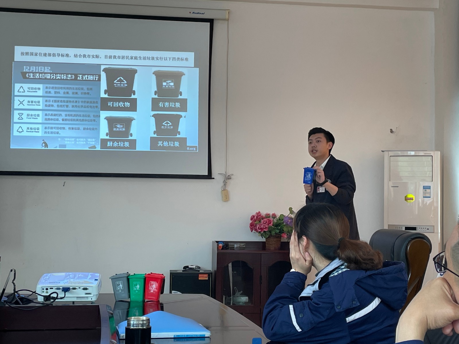 此次職工培訓(xùn)特邀人人安康公益服務(wù)中心宣教科的老師主講,普及了健康環(huán)保理論知識和環(huán)保法律法規(guī),四川省生活垃圾分類的管理辦法、單位個人如何正確進(jìn)行垃圾分類以及環(huán)境污染與健康飲食飲水知識等相關(guān)內(nèi)容。針對電站員工關(guān)于部分生活垃圾如何分類的困惑,老師結(jié)合生活實際,給大家一一作了講解。