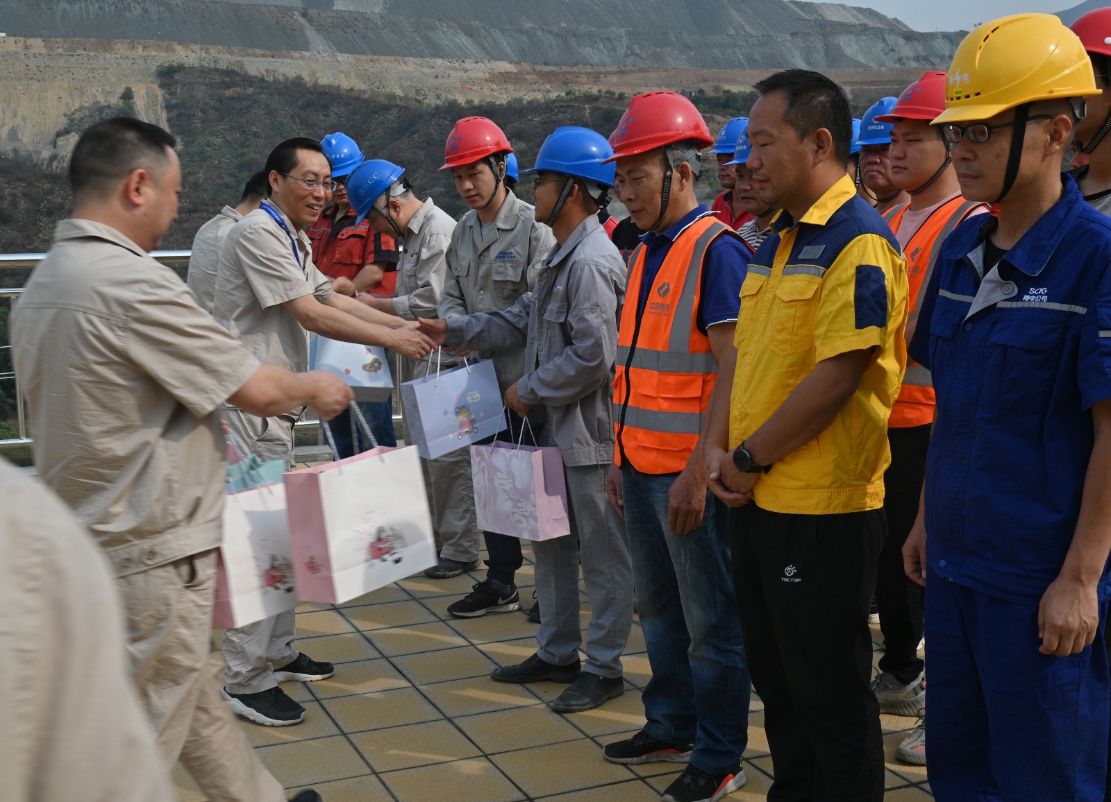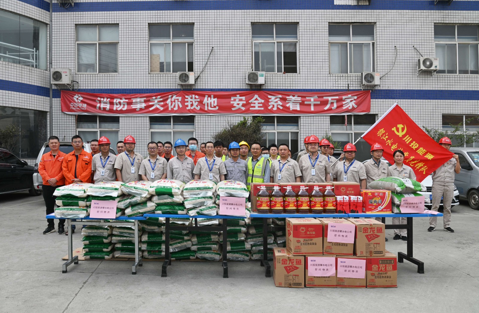 火紅五月,鳳凰花開(kāi),正值攀枝花最炎熱的夏季?!拔逡弧眹?guó)際勞動(dòng)節(jié)當(dāng)天,按照川投能源黨委“五個(gè)先鋒”及公司黨總支陽(yáng)光銀江大黨建之“十道陽(yáng)光”行動(dòng)計(jì)劃安排部署,本著“服務(wù)一線職工、助力工程建設(shè)”的宗旨,川投能源攀水電公司工會(huì)組織了送黨史書(shū)籍暨五一慰問(wèn)活動(dòng)。川投能源副總經(jīng)理、公司黨總支書(shū)記、董事長(zhǎng)徐孝剛帶領(lǐng)公司黨員先鋒隊(duì)及志愿者服務(wù)隊(duì)共20余人,慰問(wèn)堅(jiān)守在銀江水電站工程建設(shè)一線、戰(zhàn)斗在高溫酷暑之中的勞動(dòng)者們,公司黨總支委員、董事會(huì)秘書(shū)、工會(huì)主席鄧勇主持活動(dòng)。