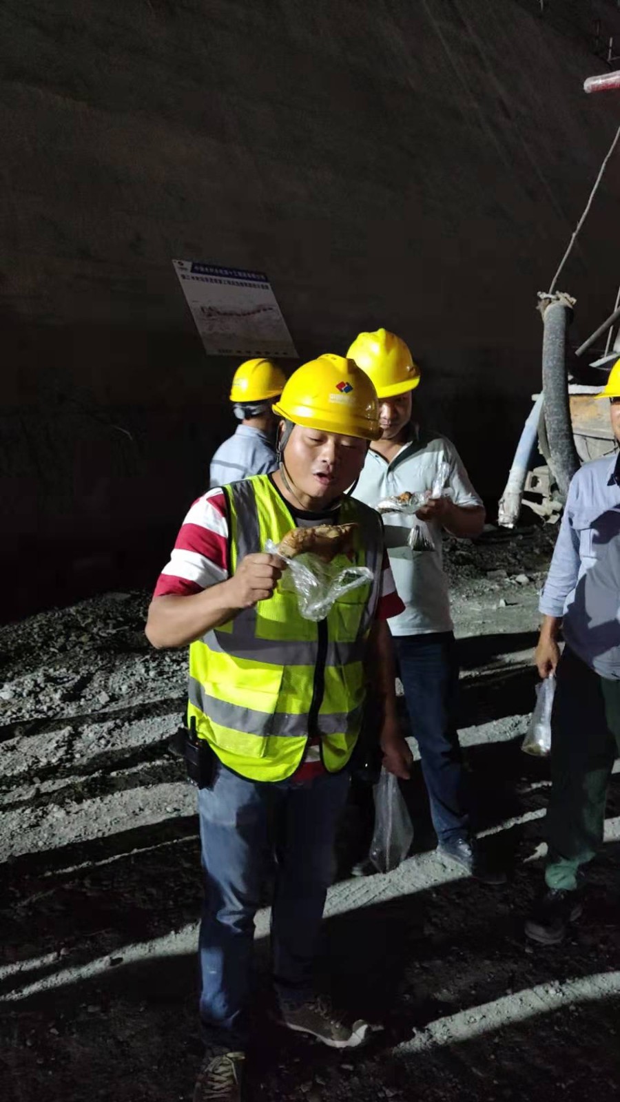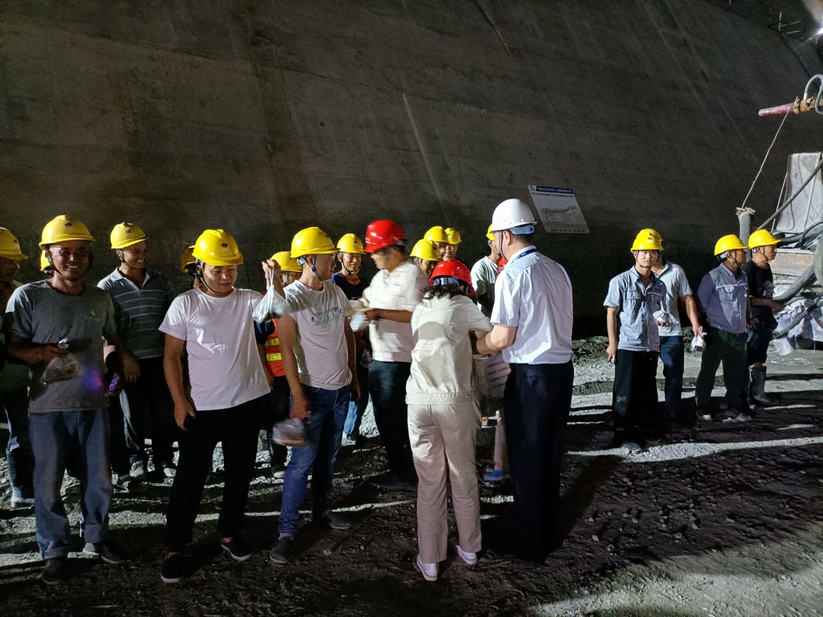 當(dāng)日下午公司志愿者就開(kāi)始忙活起來(lái),鹵雞腿、包粽子、煮鹽蛋,采用流水線(xiàn)工作方式,把熱乎乎的雞腿、粽子、咸鴨蛋等進(jìn)行分裝,方便工友在工地食用。晚上十點(diǎn),慰問(wèn)人員分成三組,分別前往康家溝渣場(chǎng)、銀江大橋、導(dǎo)流明渠、砂石骨料加工系統(tǒng)、混凝土生產(chǎn)系統(tǒng)等值班點(diǎn)位和夜間施工現(xiàn)場(chǎng),將慰問(wèn)品送到一線(xiàn)工友們的手中,對(duì)端午佳節(jié)期間依然奮戰(zhàn)在施工一線(xiàn)的人員致以親切問(wèn)候,對(duì)大家咬緊牙關(guān)、不畏疲勞、迎難而上的工作態(tài)度表示充分肯定,對(duì)大家舍小家顧大家的奉獻(xiàn)精神致以崇高敬意,同時(shí)叮囑大家一定要注意身體健康和夜間施工安全。