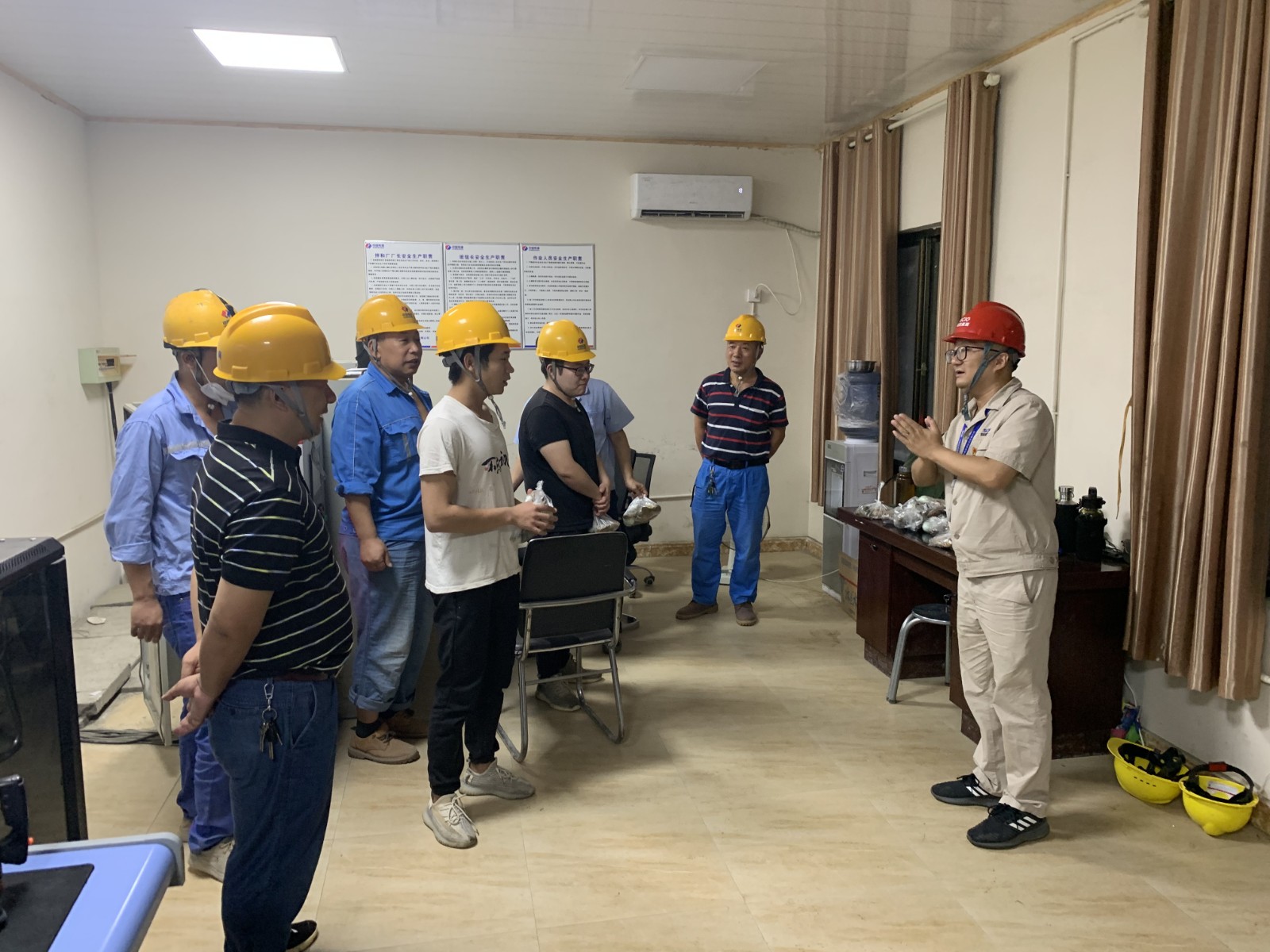 6月13日端午節(jié)前夕深夜,公司值班領(lǐng)導(dǎo)、黨總支委員、董事會(huì)秘書(shū)、工會(huì)主席鄧勇,總經(jīng)理助理唐伽帶領(lǐng)值班人員,對(duì)銀江水電站工地現(xiàn)場(chǎng)防洪度汛值班點(diǎn)位及施工現(xiàn)場(chǎng)進(jìn)行了檢查;公司志愿者服務(wù)隊(duì)共計(jì)10余人對(duì)節(jié)日期間堅(jiān)守在銀江水電站工地夜間施工的一線(xiàn)人員進(jìn)行了慰問(wèn)。