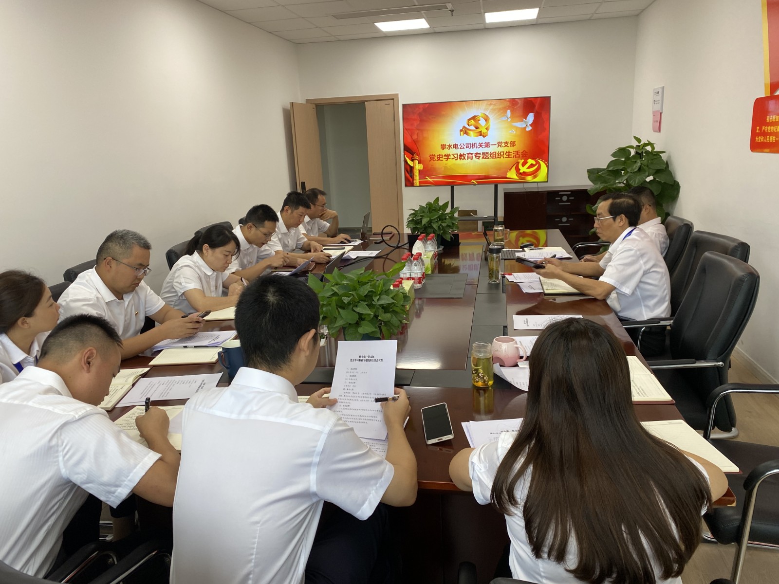 為認(rèn)真貫徹“學(xué)史明理、學(xué)史增信、學(xué)史崇德、學(xué)史力行”要求,交流學(xué)習(xí)體會,查找差距不足,8月18日上午及8月20日下午,攀水電公司機關(guān)第一黨支部組織召開黨史學(xué)習(xí)教育專題組織生活會。會議由支部書記李偉主持,川投能源公司副總經(jīng)理、攀水電公司黨總支書記徐孝剛作為川投能源聯(lián)系攀水電公司領(lǐng)導(dǎo)列席會議指導(dǎo),同時作為支部普通黨員參加會議。公司黨總支委員、工會主席、董事會秘書鄧勇,副總經(jīng)理周軍以普通黨員身份參加會議。