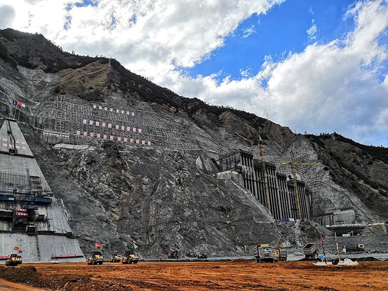 目前,正值兩河口電站工程建設(shè)的重要時(shí)期,到處都是熱火朝天的勞動(dòng)畫面。上百家參建單位、2萬多名建設(shè)者揮灑“艱苦不怕吃苦、缺氧不缺精神”的豪邁情懷,克服“五高六大兩長”難點(diǎn)和高寒海拔惡劣自然環(huán)境、復(fù)雜的建設(shè)環(huán)境等不利條件,工程建設(shè)實(shí)現(xiàn)一個(gè)又一個(gè)里程碑目標(biāo)。在高土石壩,上百臺(tái)推土機(jī)在工地上忙碌穿梭,建設(shè)者們忙碌的身影和機(jī)械的隆隆聲交織回蕩在高山峽谷中,這座世界第3高壩正日益成型;在兩岸巖壁上,為了在200層樓高的幾乎垂直的巖壁中固定15000根錨索,黨員帶頭沖鋒在前,硬是將一根根的錨索肩扛手提抬了上去;在地下廠房,建設(shè)者們克服潮濕昏暗、溫差變化大的不利條件,晝夜不停精心安裝碩大無比的發(fā)電裝置,工地上隨處可見一面面黨員突擊隊(duì)、青年突擊隊(duì)火紅的旗幟迎風(fēng)飄揚(yáng),成為一道道亮麗的風(fēng)景線。